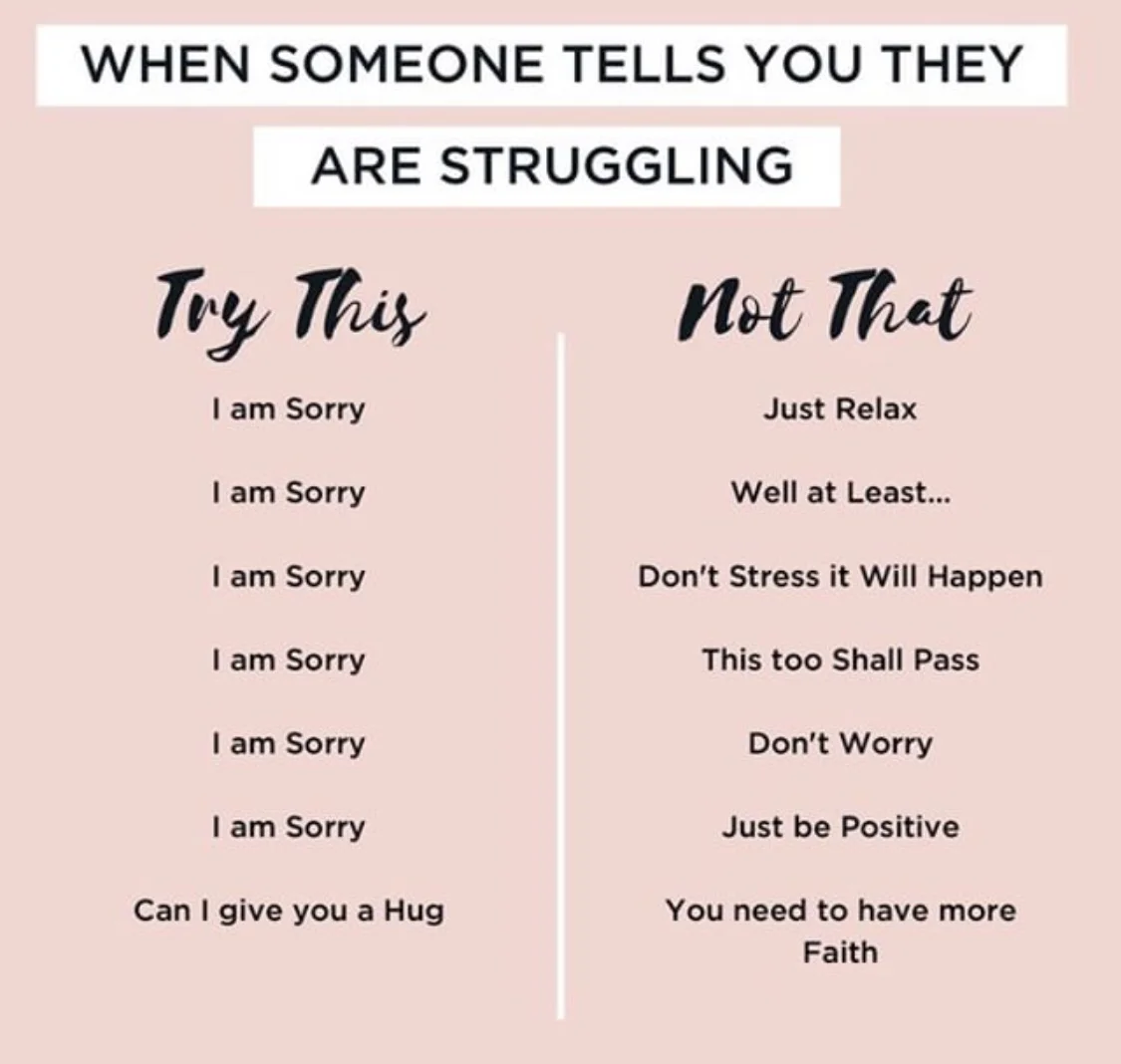 Unfortunately, it wasn’t always what I needed, or wanted to hear. I had people close to me, that didn’t know how to react, and their knee jerk responses made me feel horrible. It wasn’t their fault, they didn’t understand, but it’s important for those of you looking to be there for someone to take note.